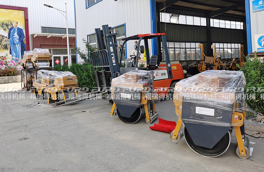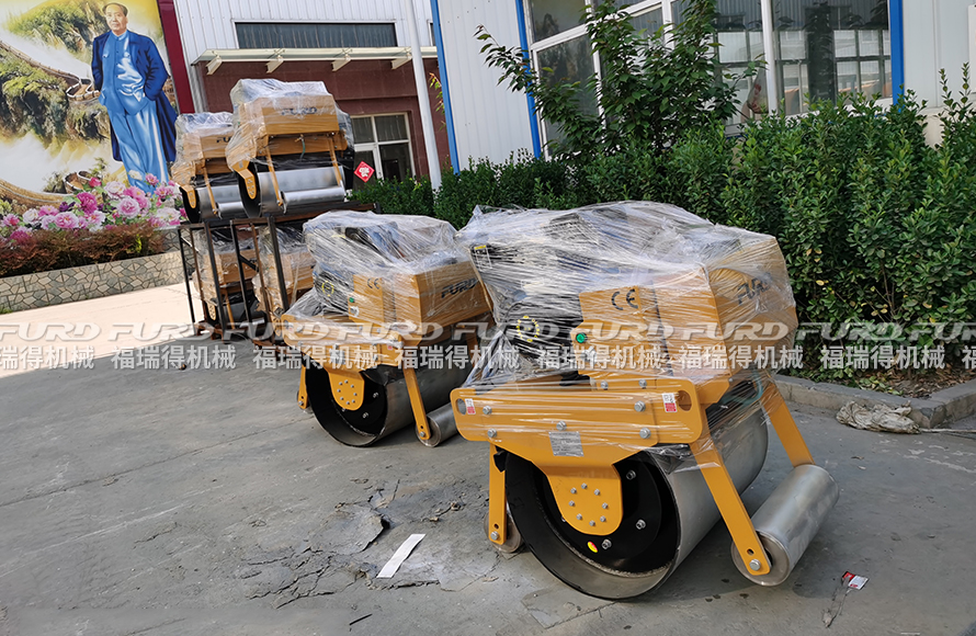 福瑞得機械8臺手扶單鋼輪壓路機打包發(fā)往青島